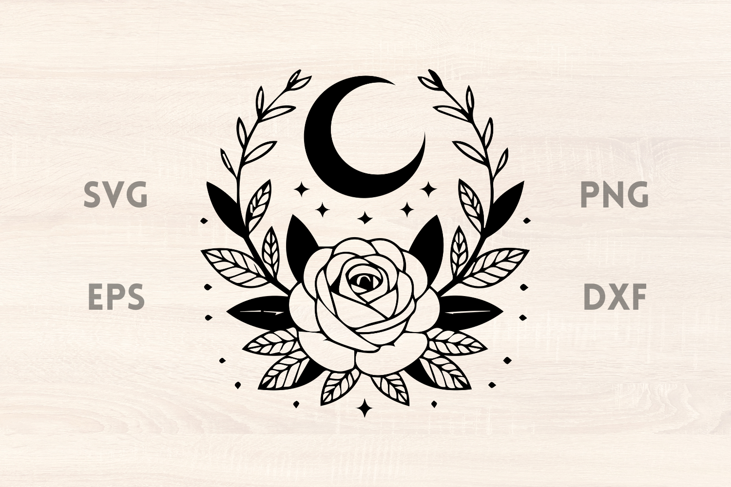 Rose with moon Halloween SVG is an whimsical Halloween SVG, perfect for laser cut designs, shirts, hoodies, tote bags, cards or any Halloween decoration