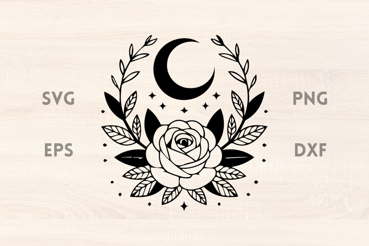 Rose with moon Halloween SVG is available in EPS, SVG, DXF & PNG format. The cutting points were reduced to a minimum, so the cutting process will be a lot faster.