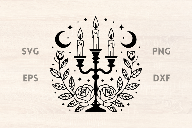 Candles with Moons and Laurel Halloween SVG is an whimsical Halloween SVG, perfect for laser cut designs, shirts, hoodies, tote bags, cards or any Halloween decoration