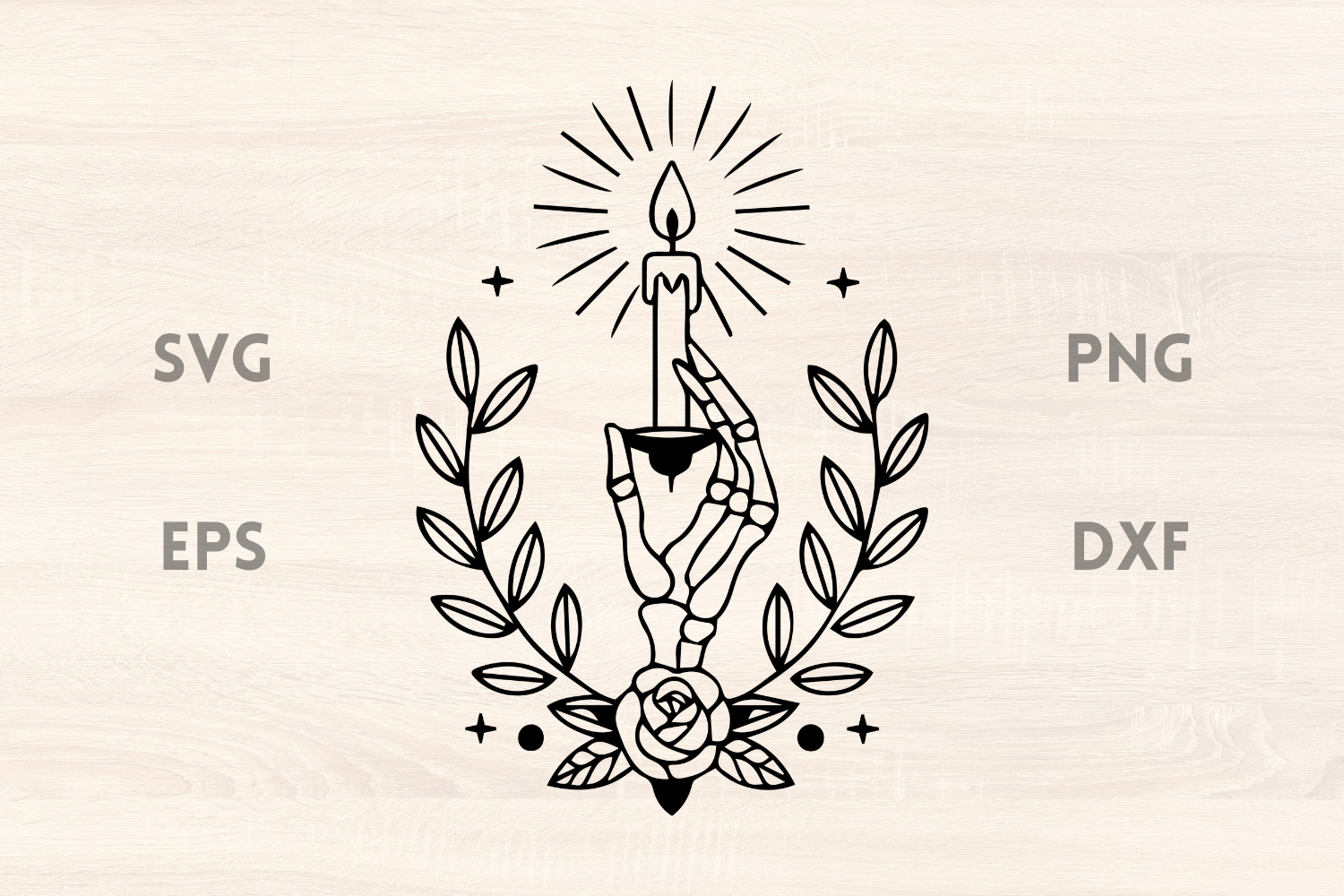 Floral Svg Fantasy Svg Spooky Svg Rose Wreath Candle Svg Skeleton Hand Rose Witch With Moon Svg Wicthcraft