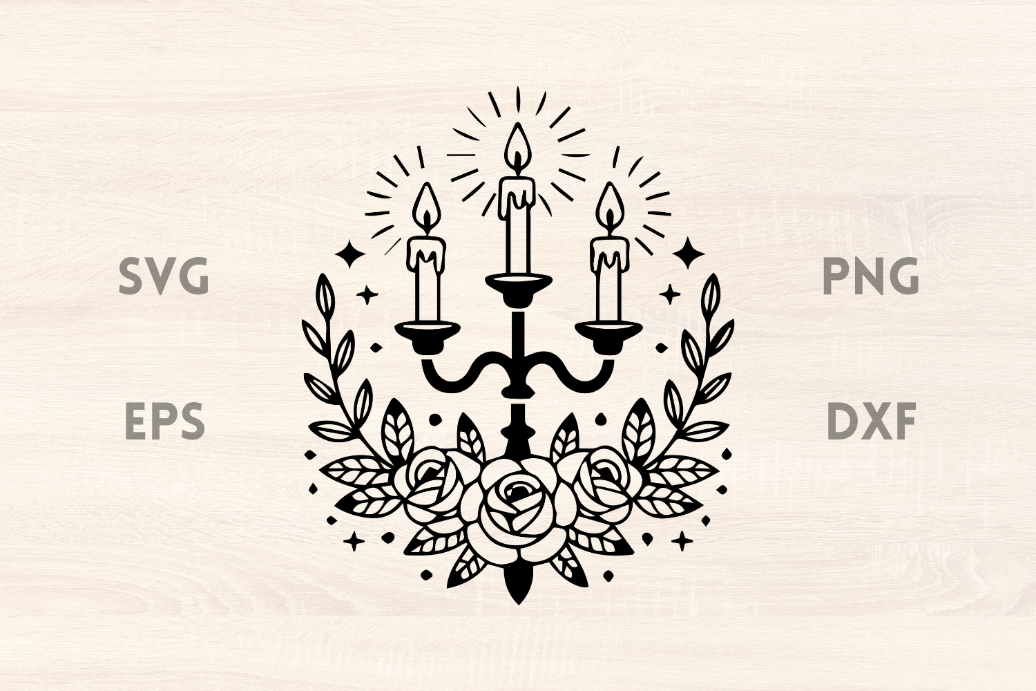 Candles with Roses Halloween SVG is an whimsical Halloween SVG, perfect for laser cut designs, shirts, hoodies, tote bags, cards or any Halloween decoration
