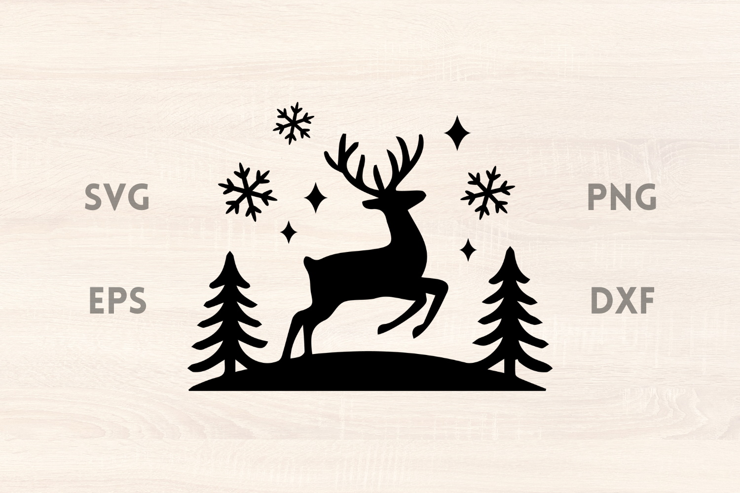 Reindeer Svg Snowflake Festive Svg Fir Tree Stars Svg Christmas Silhouette Christmas Scene Whimsical Christmas Winter Scene