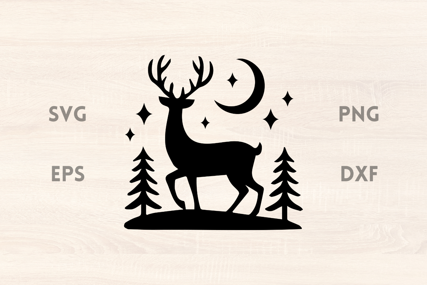 Reindeer Svg Festive Svg Fir Tree Stars Svg Moon Svg Christmas Silhouette Christmas Scene Whimsical Christmas Winter Scene