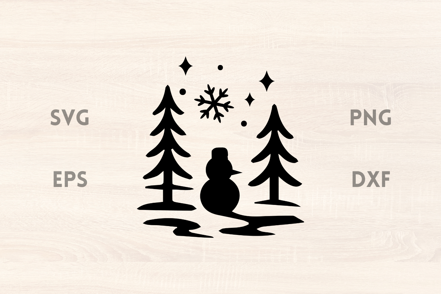 Snowman Svg Snowflake Festive Svg Christmas Silhouette Christmas Scene Whimsical Christmas Winter Scene
