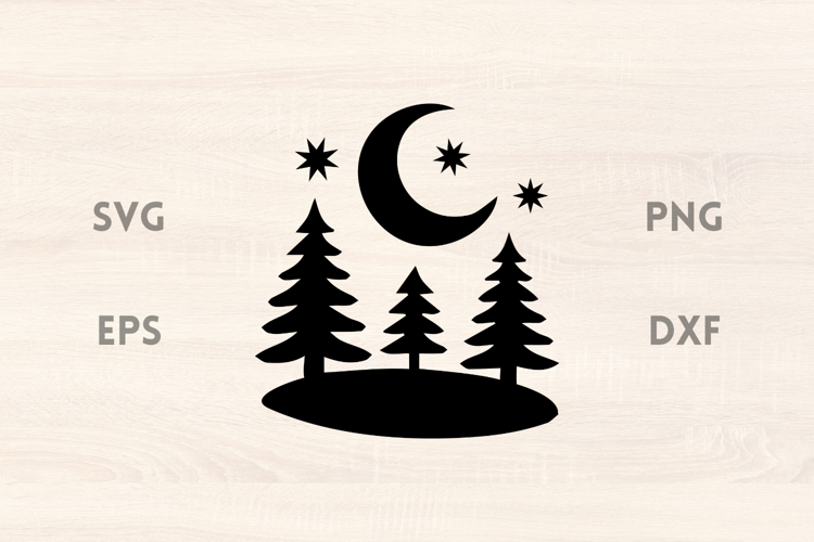 Winter Fir Trees with Moon SVG Scene is in SVG, EPS, PNG and DXF formats, with fewer cutting points for a faster cutting process.