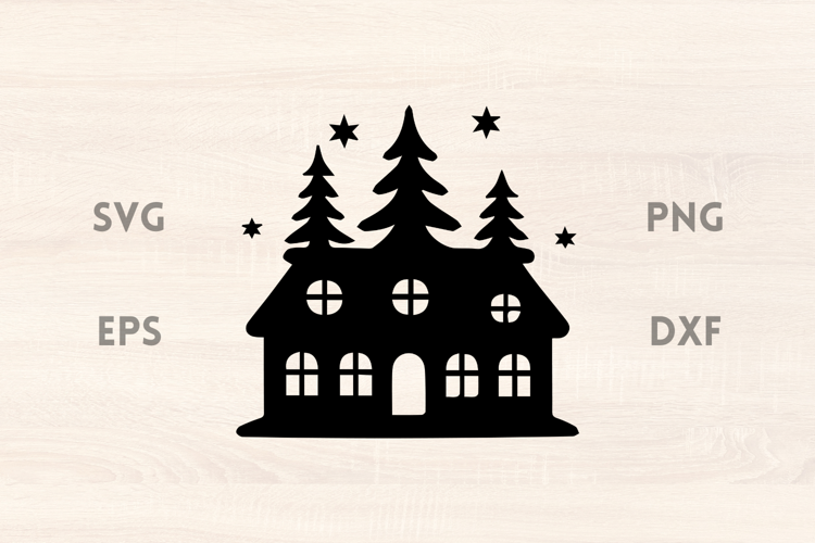 Winter Cottage with trees SVG Scene is in SVG, EPS, PNG and DXF formats, with fewer cutting points for a faster cutting process.