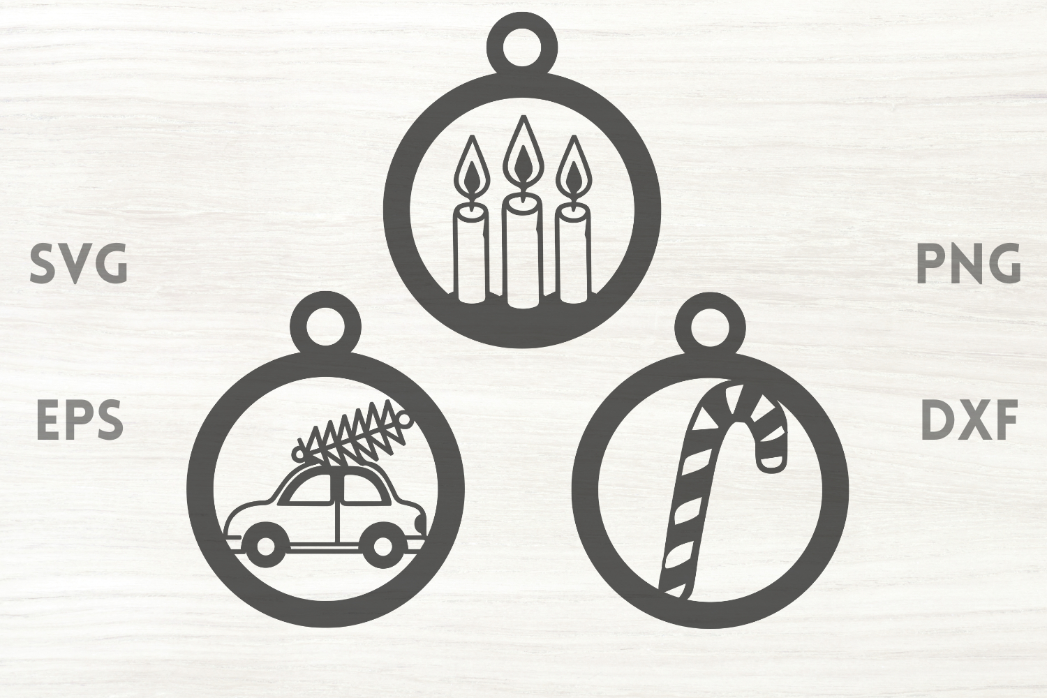 Candles Car Candy Cane SVG is a small Christmas SVG collection, perfect for holiday crafts. The items can be used for laser cut crafts and tree decorations.