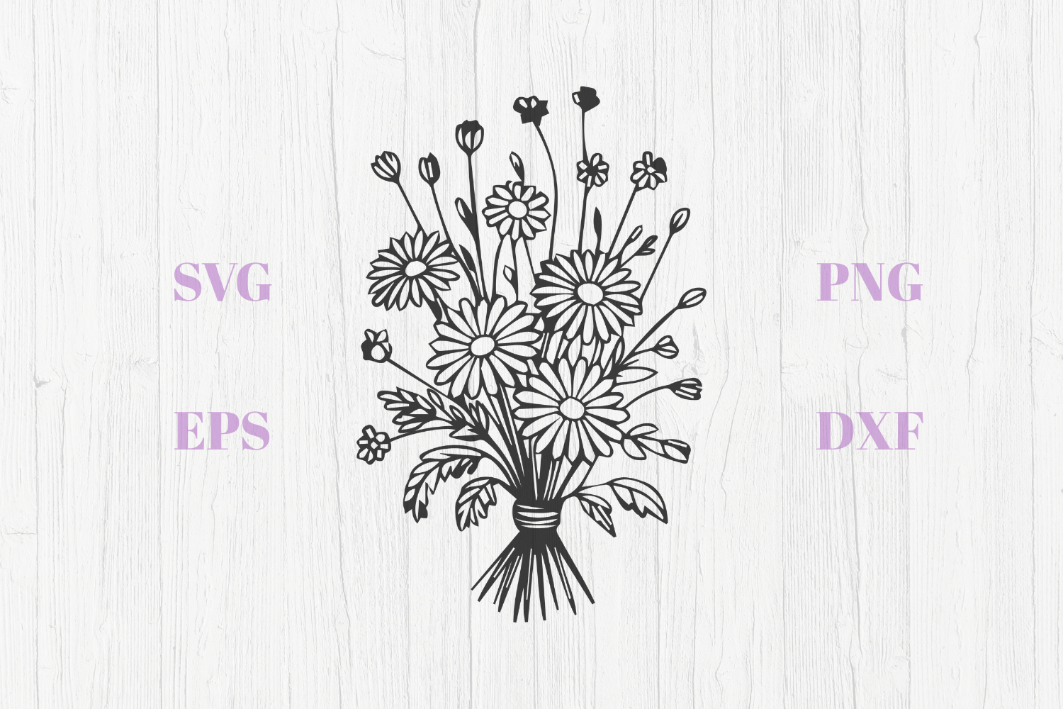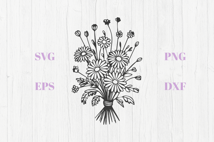 Wild flowers daisies bouquet SVG are in EPS, SVG, DXF & PNG format. The cutting points were reduced to a minimum, so the cutting process will be a lot faster.