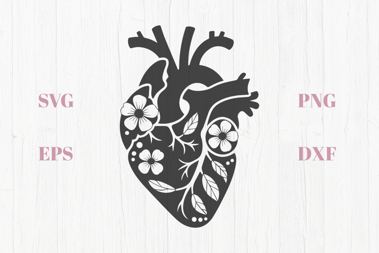 Anatomical floral heart SVG is a design perfect for Valentine's Day cards, gifts, decorations and ornaments.