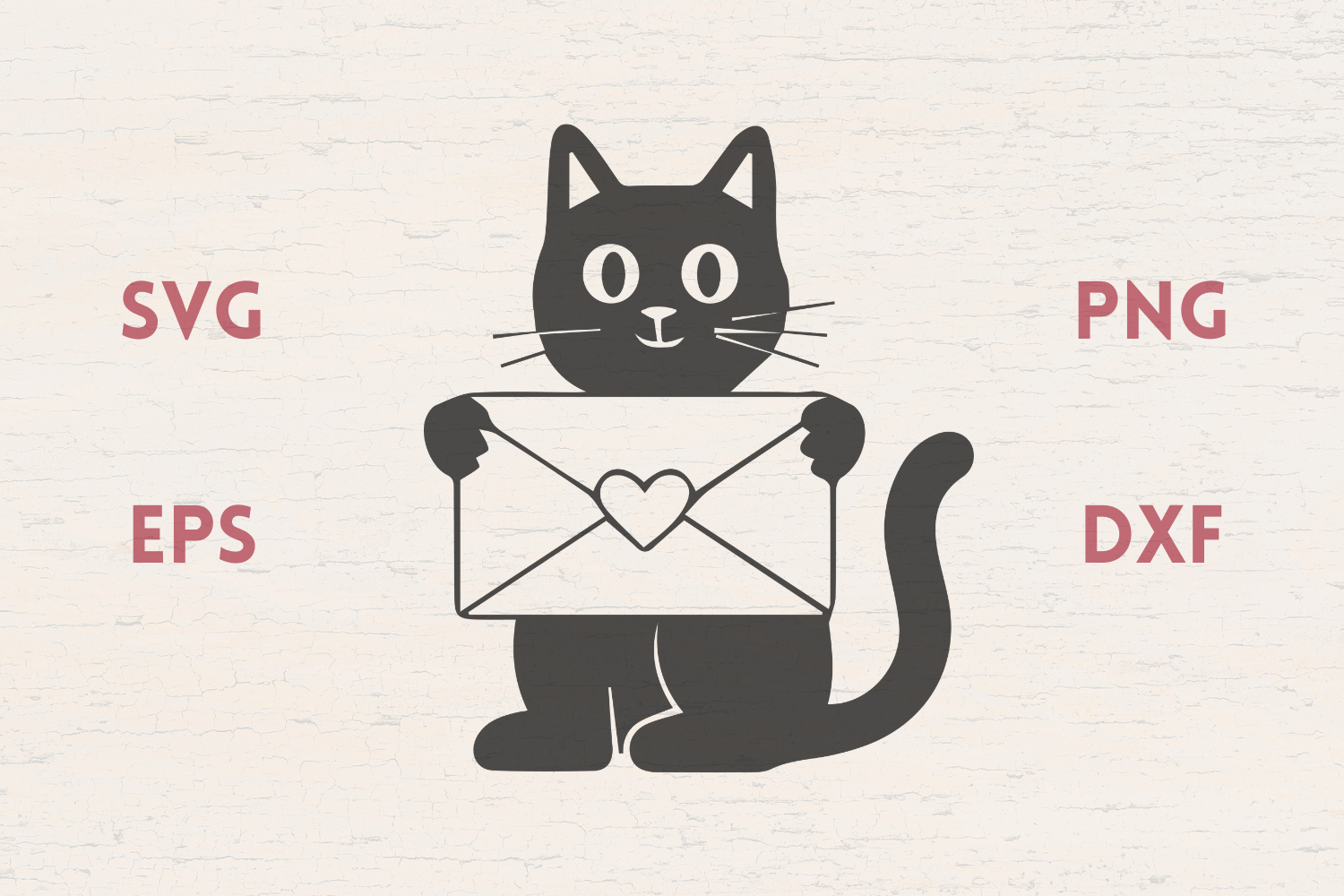 Cute Cat with love letter are in EPS, SVG, DXF & PNG format. The cutting points were reduced to a minimum, so the cutting process will be a lot faster.