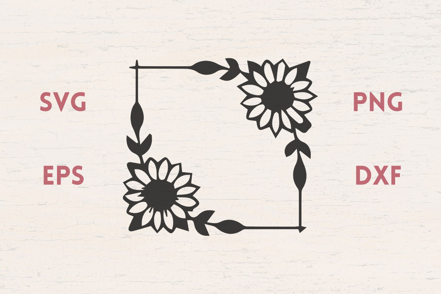 Sunflower frame SVG are in EPS, SVG, DXF & PNG format. The cutting points were reduced to a minimum, so the cutting process will be a lot faster.