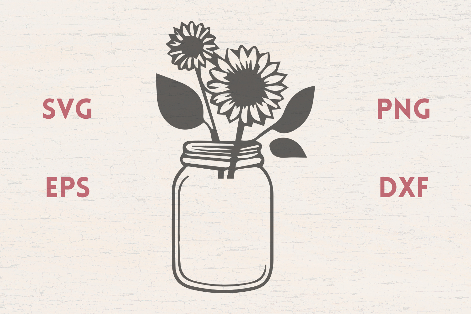 Sunflowers with jar SVG are in EPS, SVG, DXF & PNG format. The cutting points were reduced to a minimum, so the cutting process will be a lot faster.