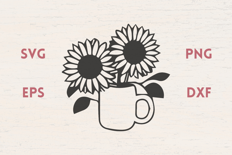 Sunflowers in mug SVG are in EPS, SVG, DXF & PNG format. The cutting points were reduced to a minimum, so the cutting process will be a lot faster.