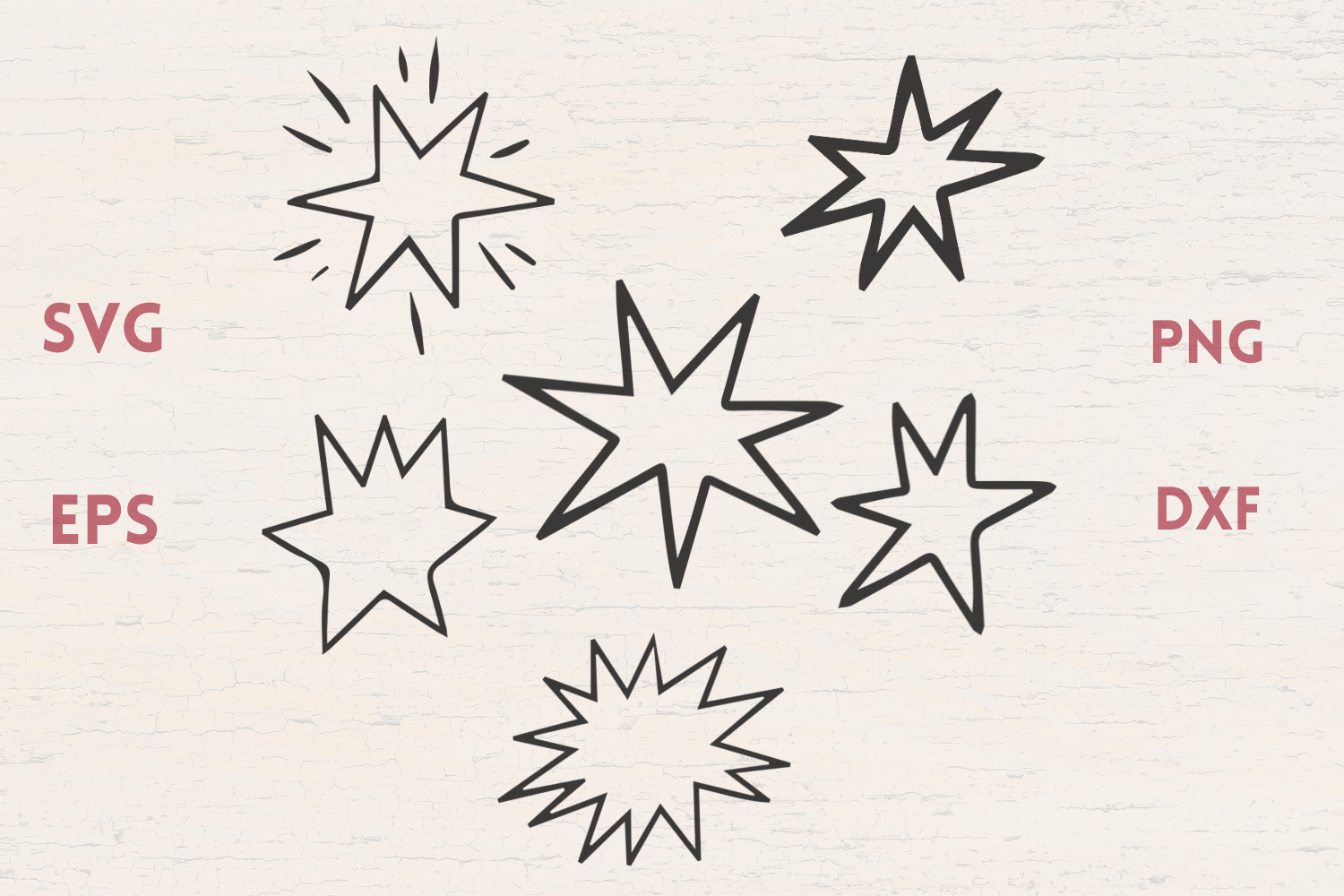 Sparkly Stars SVG are in EPS, SVG, DXF & PNG format. The cutting points were reduced to a minimum, so the cutting process will be a lot faster.