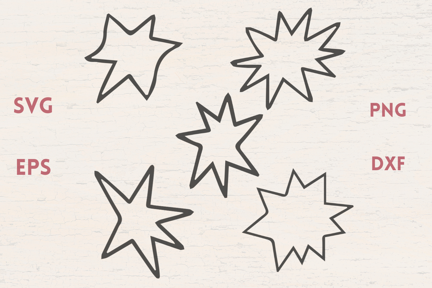 Sparkly Stars 2 SVG are in EPS, SVG, DXF & PNG format. The cutting points were reduced to a minimum, so the cutting process will be a lot faster.