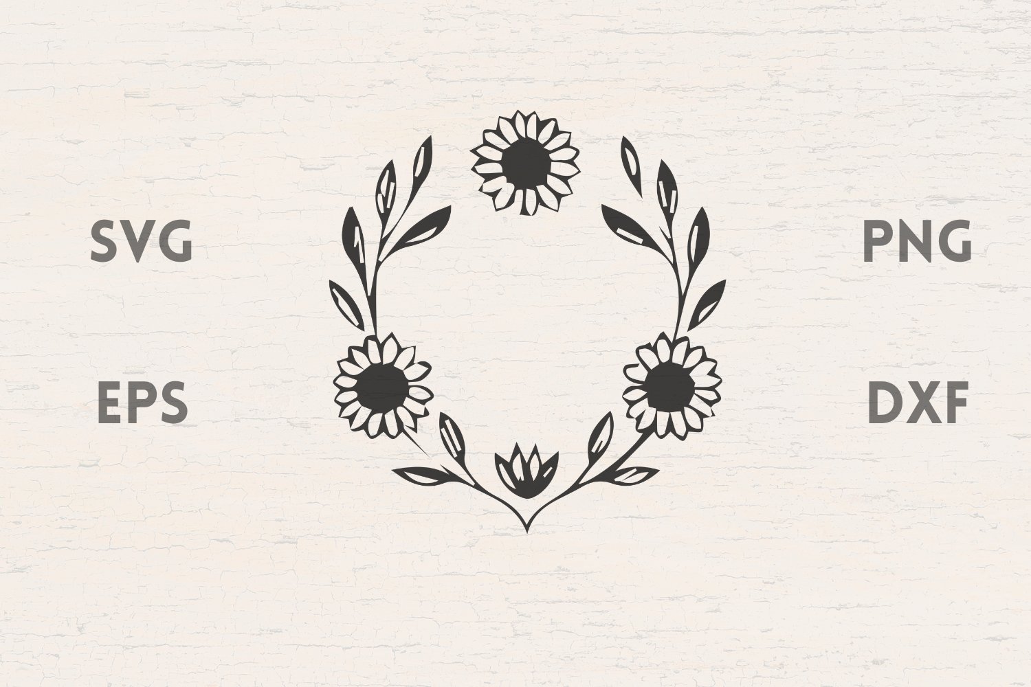 Sunflower laurel frame SVG are in EPS, SVG, DXF & PNG format. The cutting points were reduced to a minimum, so the cutting process will be a lot faster.