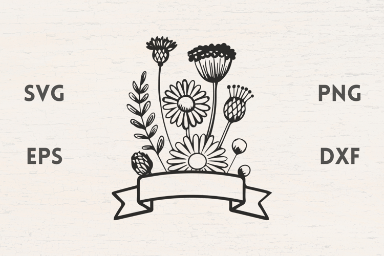 Flower Svg Summer Svg Spring Svg Boho Svg Branch Svg Wildflower Svg Ribbon With Flowers And Branch Svg