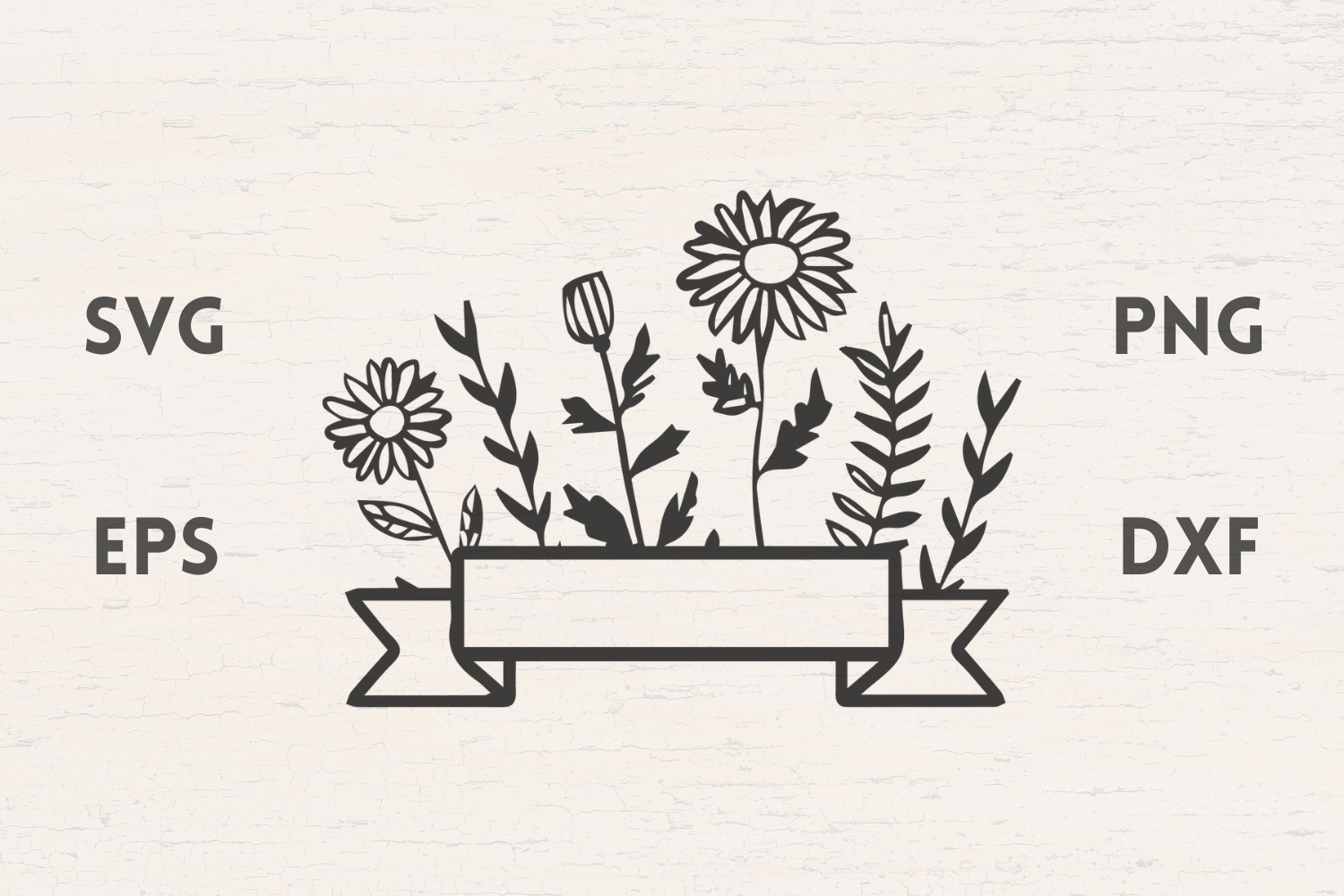 Banner with flowers and branches SVG is in EPS, SVG, DXF & PNG format. The cutting points were reduced to a minimum, so the cutting process will be a lot faster.