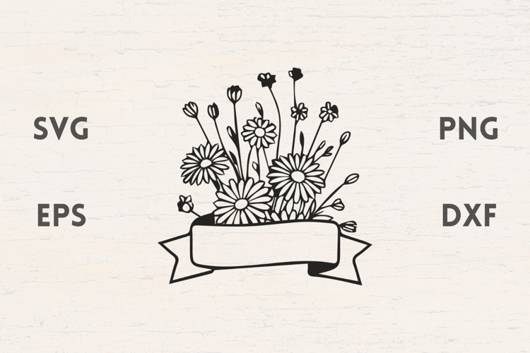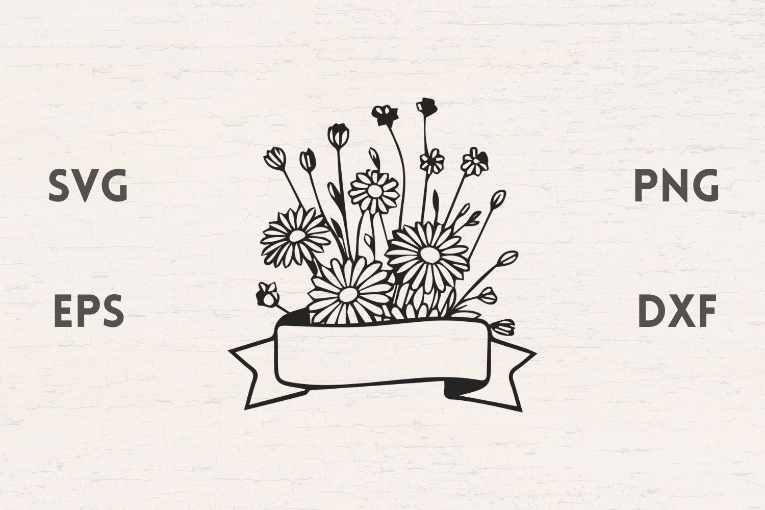 Banner with wild flowers SVG is in EPS, SVG, DXF & PNG format. The cutting points were reduced to a minimum, so the cutting process will be a lot faster.