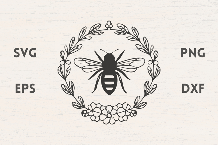 Summer Svg Flower Wreath Honeybee Bee Svg Honey Bee Wings Svg Insect Svg Bee With Flower Laurel And Flowers Svg