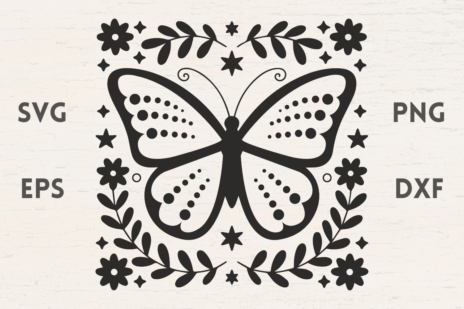 Decorative Butterfly illustration with dots are in EPS, SVG, DXF & PNG format. The cutting points were reduced to a minimum, so the cutting process will be a lot faster.