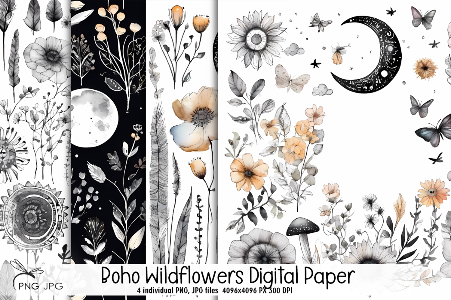 Wildflowers Vintage Digital Paper Doodle Illustration Boho Digital Paper Wildflowers Digital Paper Spring Boho Hand-drawn Illustration Png Vintage Spring Boho Digital Paper Vintage Boho Digital Paper Boho Wildflowers Digital Paper