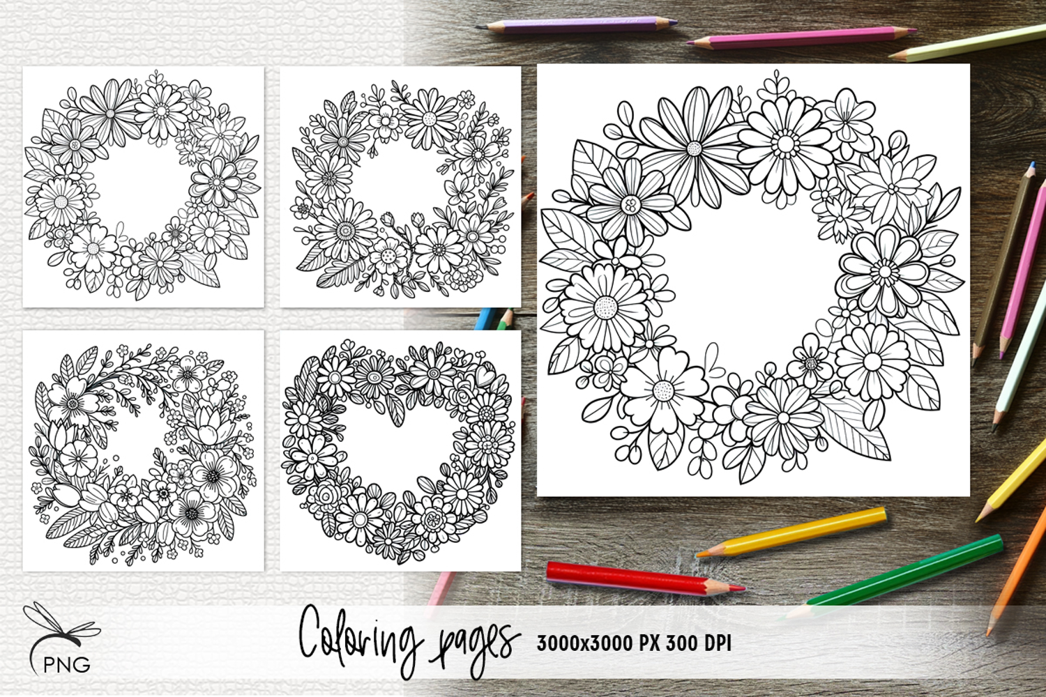 Floral wreath coloring pages example image 1