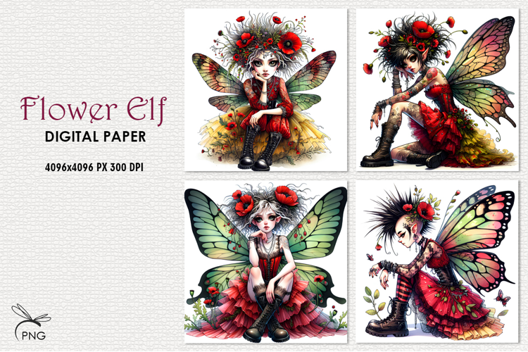 Similar Design Products to Flower elf digital paper, background clipart