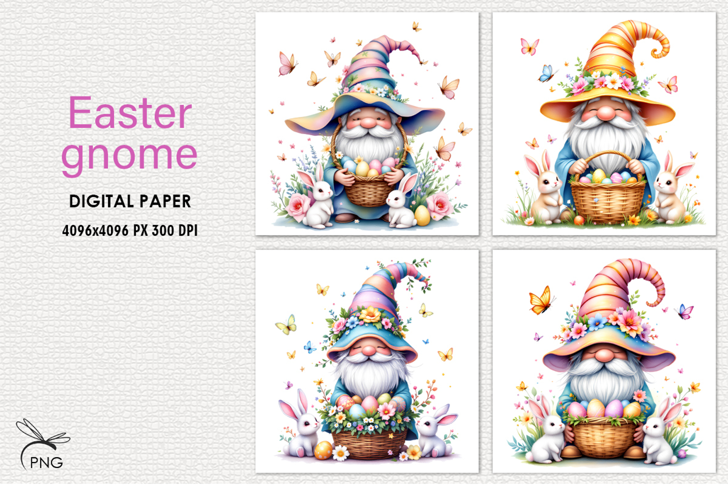 Easter gnomes digital paper, background clipart