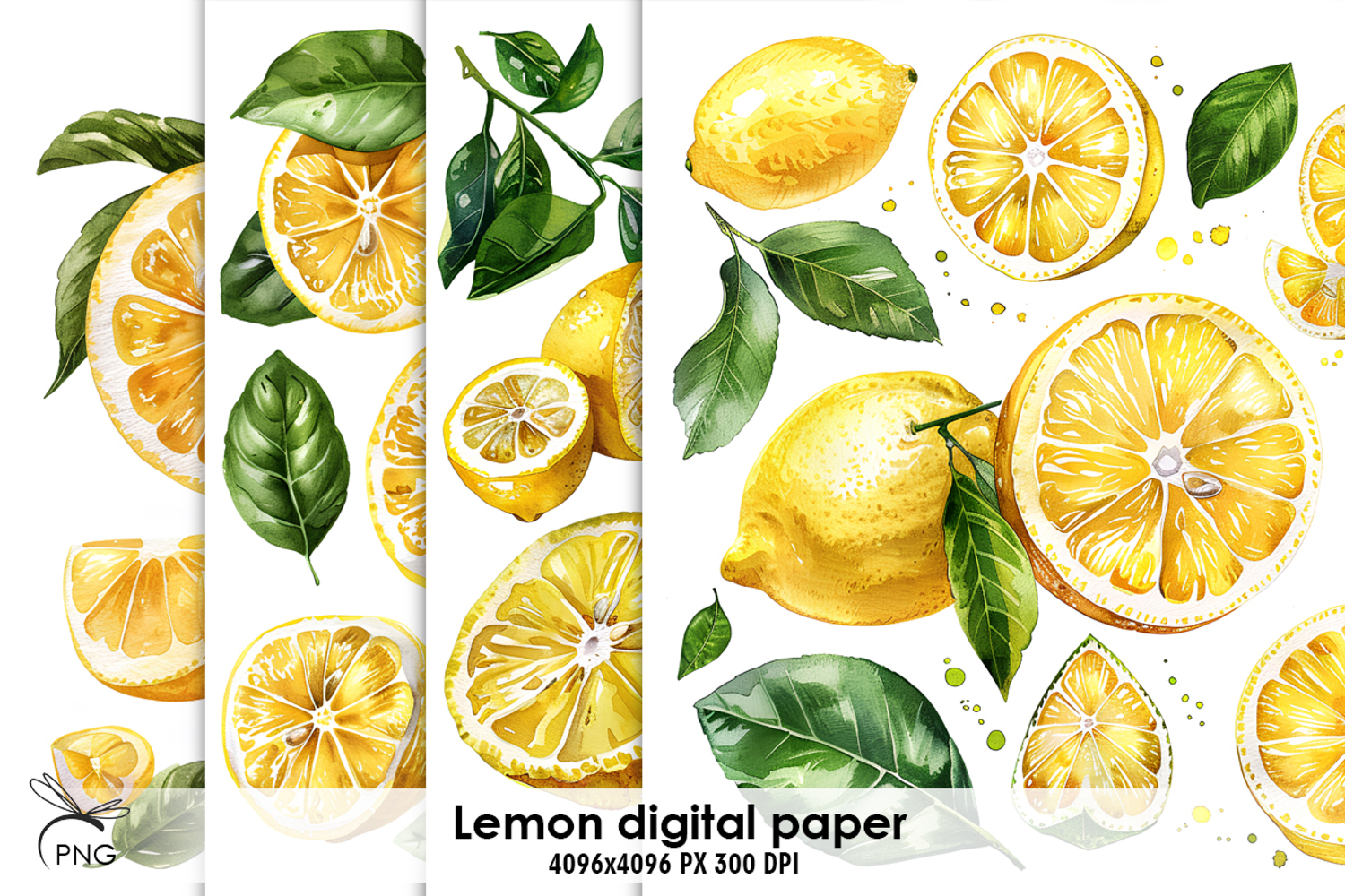 Scrapbooking Scrapbook Paper Watercolor Digital Paper Yellow Digital Paper Kitchen Digital Paper Lemon Digital Paper Citrus Digital Paper Background Clipart Plants Digital Paper Digitai Paper