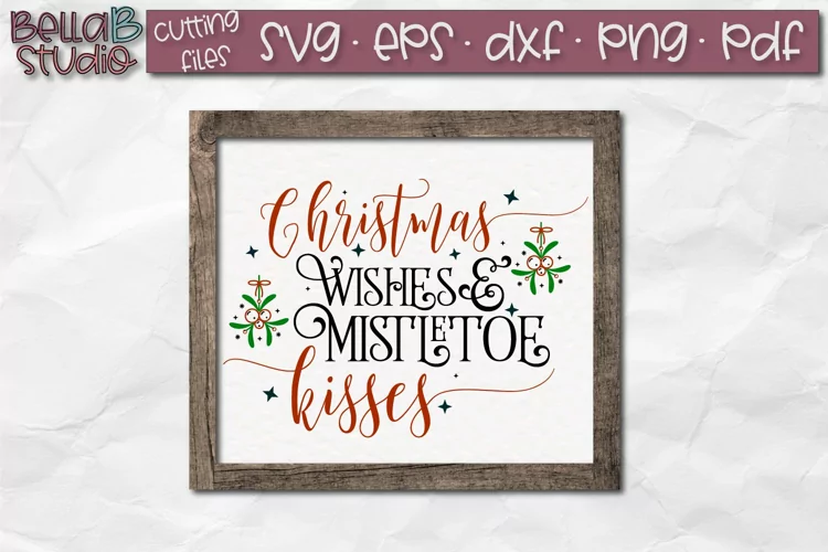 Christmas Wishes and Mistletoe Kisses SVG-Christmas Cut File example image 1