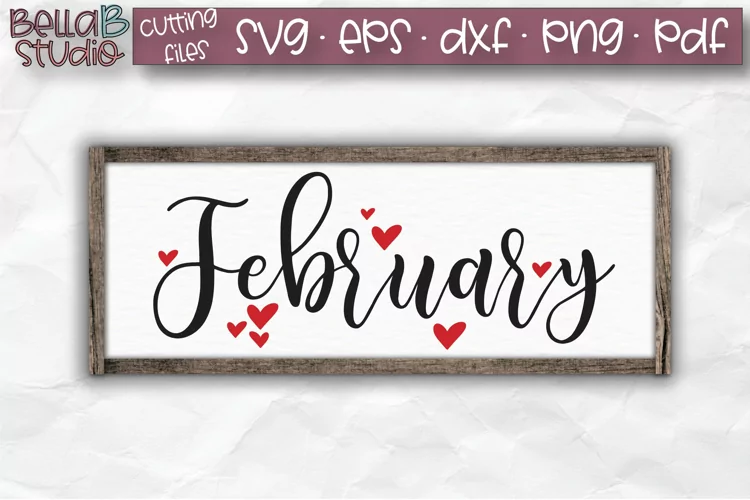 February with hearts SVG, PNG, DXF, EPS, PDF