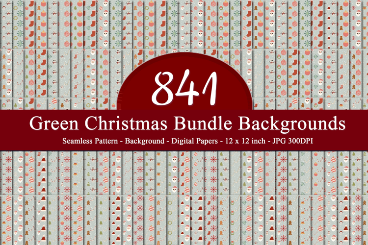 Green Christmas Seamless Pattern Mega Bundle Digital Papers