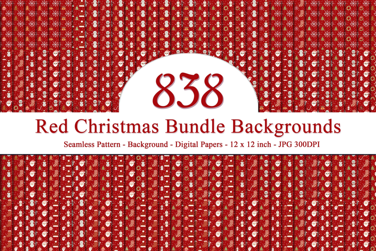Red Christmas Seamless Pattern Mega Bundle Digital Papers