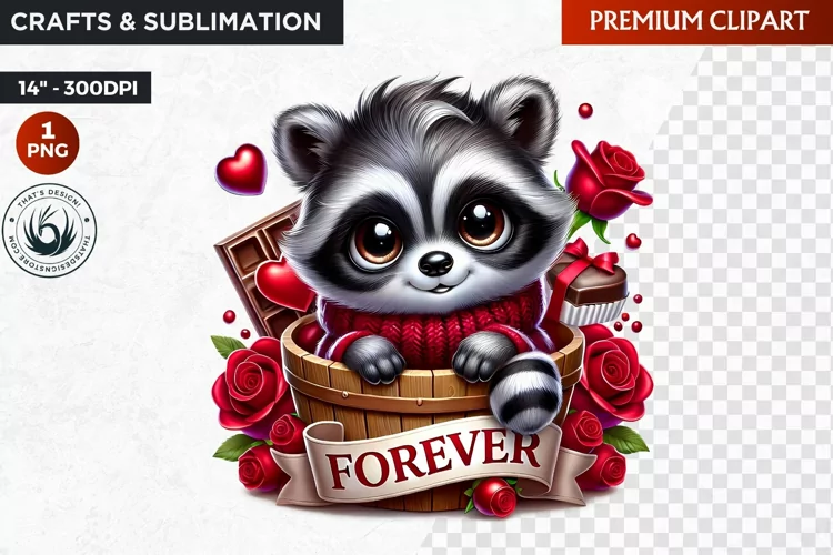 Valentines day raccoon Bucket Clipart,valentine sublimation example image 1