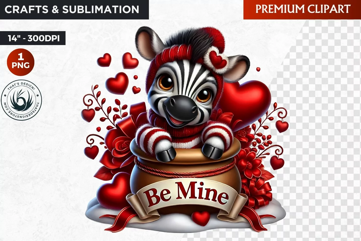 Valentines day zebra Bucket Clipart,valentine sublimation example image 1