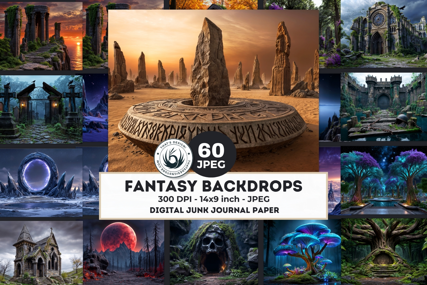 Build your own world with our "Fantasy Backdrops" digital paper collection! 🗺️✨ This versatile bundle includes 60 epic fantasy landscapes, covering a vast range of environments and moods for all your creative needs.