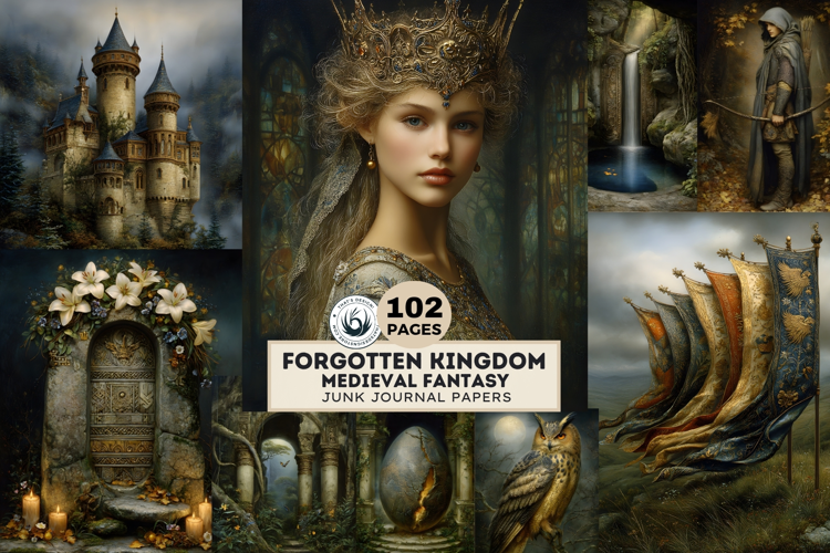 Similar Design Products to Forgotten Kingdom Medieval Fantasy Junk Journal & RPG Paper
