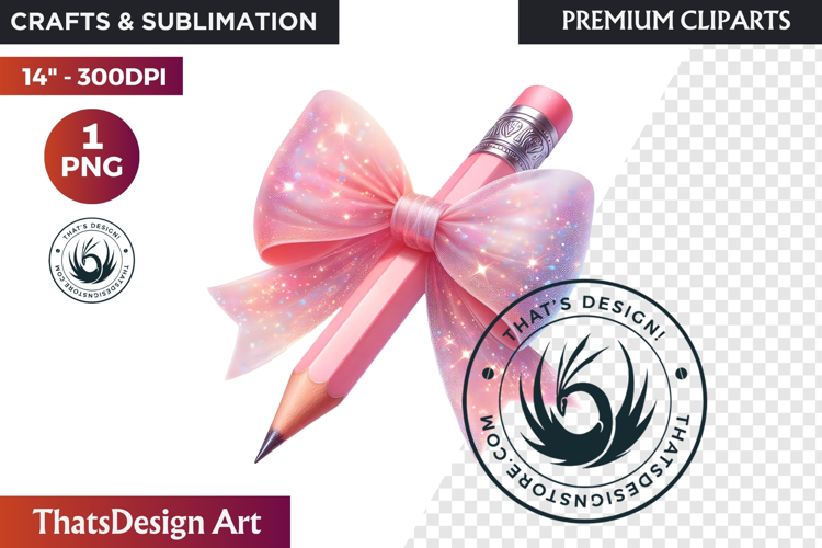 Pastel Coquette Pencil bow Clipart Girly School Supplies