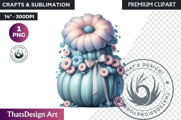 This set includes beautiful illustrations of pumpkins adorned with the softest touches. You'll find pumpkins in dreamy pastel shades of pink, blue, and mint, decorated with delicate flowers like daisies and hibiscus, and tied with elegant bows of lace, satin, and sheer, shimmery fabrics. Each design is a whisper of romance and elegance.