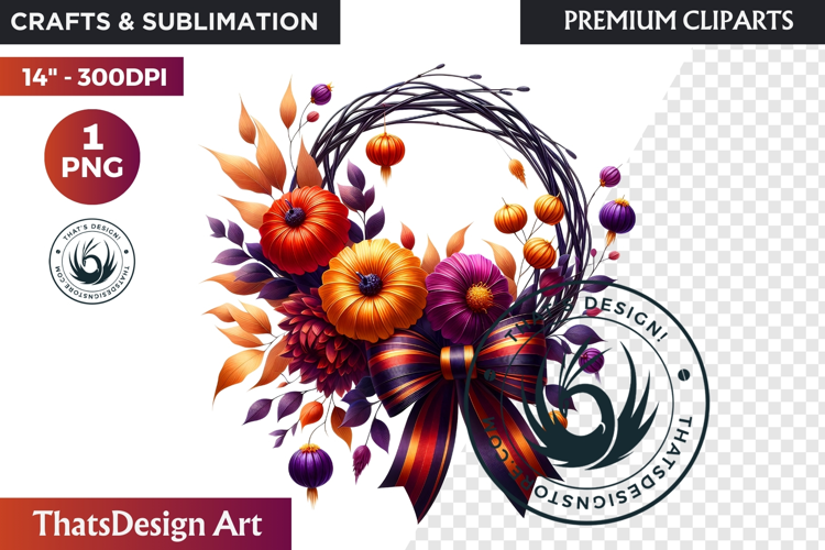 Similar Design Products to Autumn Harvest Wreath Clipart - Rustic Fall & Thanksgiving