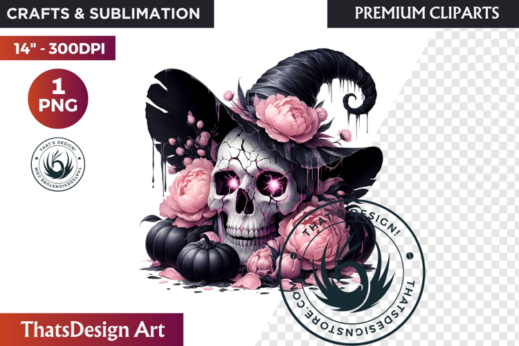 Pink and Black Gothic Halloween Skulls Clipart – Premium Transparent PNGs for Festive autumn, and Fall Designs