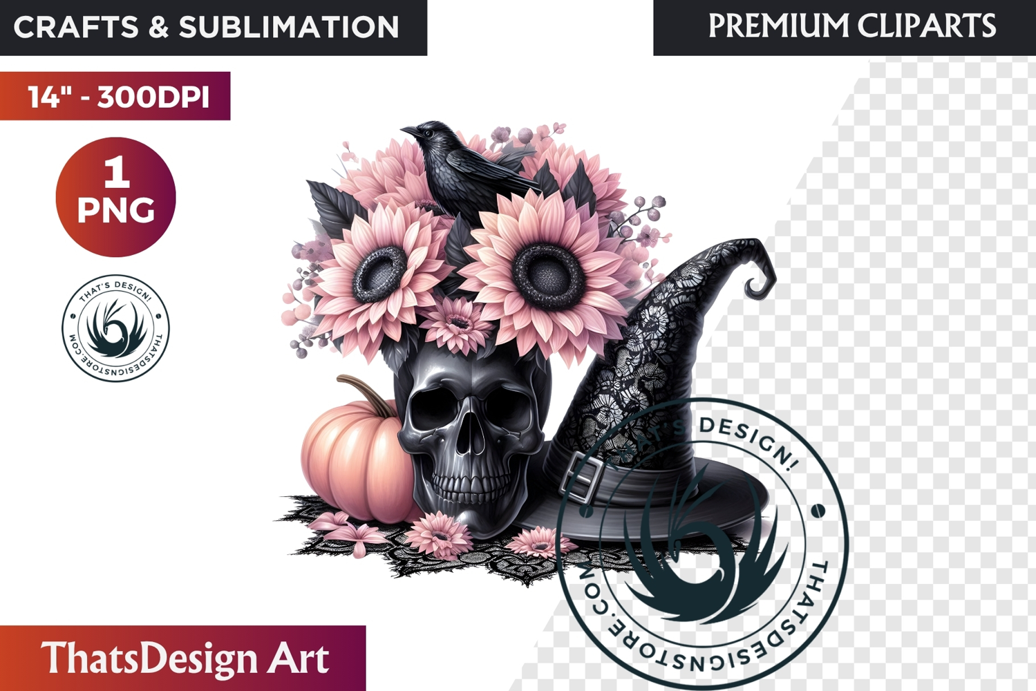 Pink and Black Gothic Halloween Skulls Clipart – Premium Transparent PNGs for Festive autumn, and Fall Designs