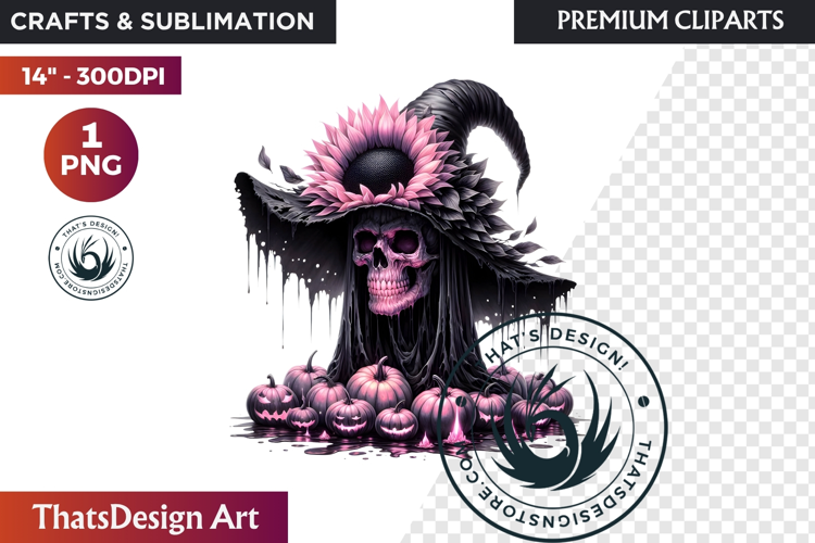 Pink and Black Gothic Halloween Skulls Clipart – Premium Transparent PNGs for Festive autumn, and Fall Designs