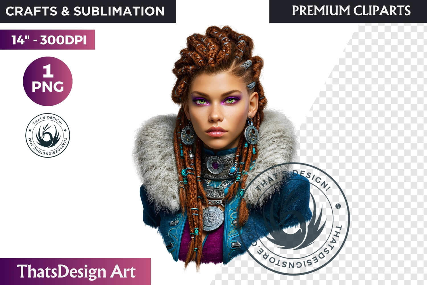 Fantasy Boreal Winter Girl Warrior & Ice Queen Clipart