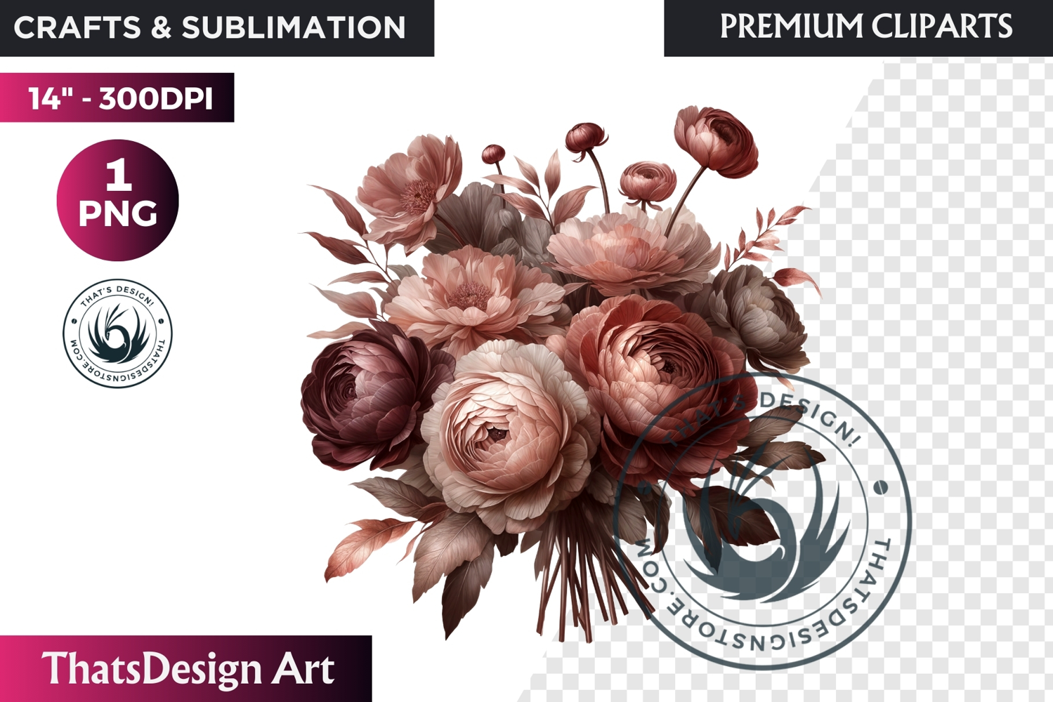 Similar Design Products to Dark flowers, wedding Florals PNG, Dark Romance Clipart