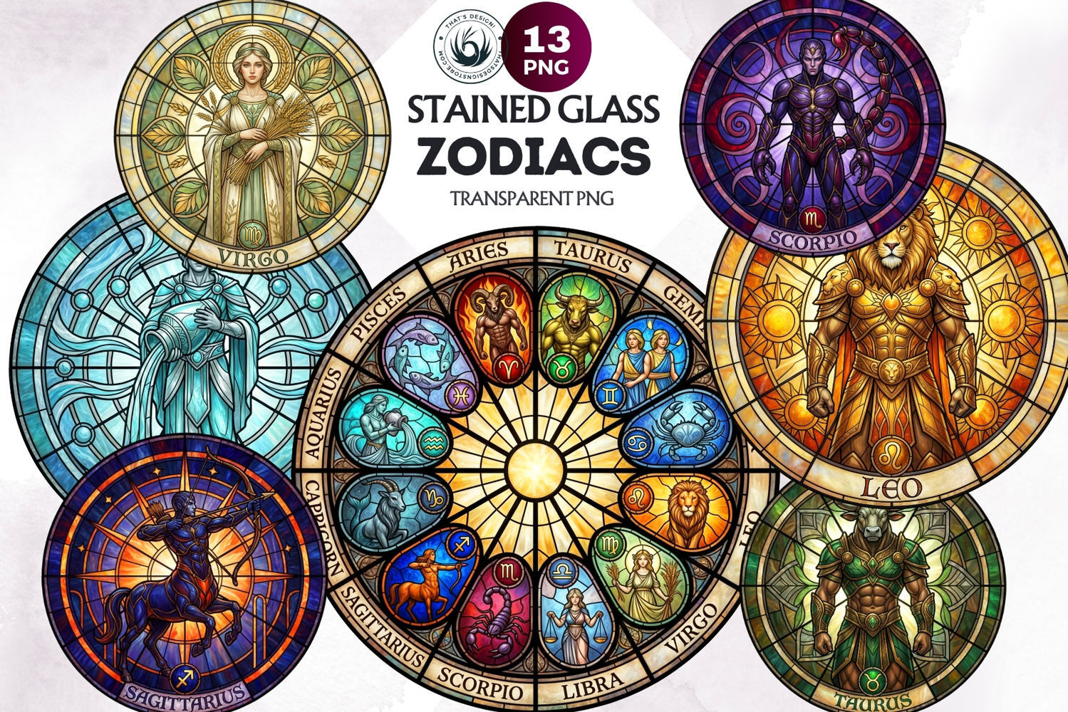 Stained Glass Zodiac Clipart Astrology Suncatcher Graphics