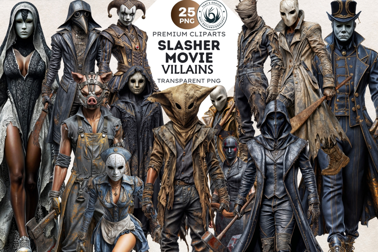 Dive into the heart of a horror film with the Slasher Movie Villains Cliparts! 🔪🩸✨ This professional collection offers 25 premium PNG illustrations featuring a diverse cast of terrifying antagonists and cinematic killers. From battle-scarred butchers to eerie masked stalkers, these images are crafted with high-detail precision to make your horror projects truly stand out.