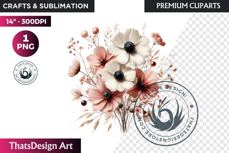 Similar Design Products to Ethereal Floral arrangements Clipart PNG Rose gold and blush