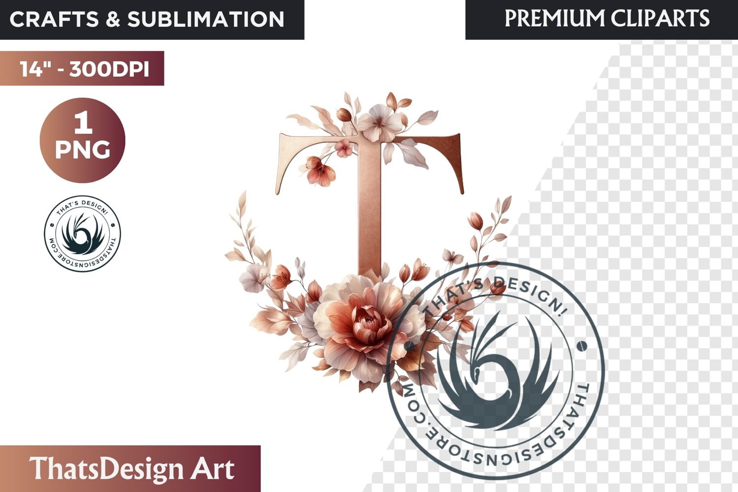 Floral Alphabet Rose Gold wedding Clipart wedding Floral arrangements - Transparent PNGs for Crafts and sublimation Designs